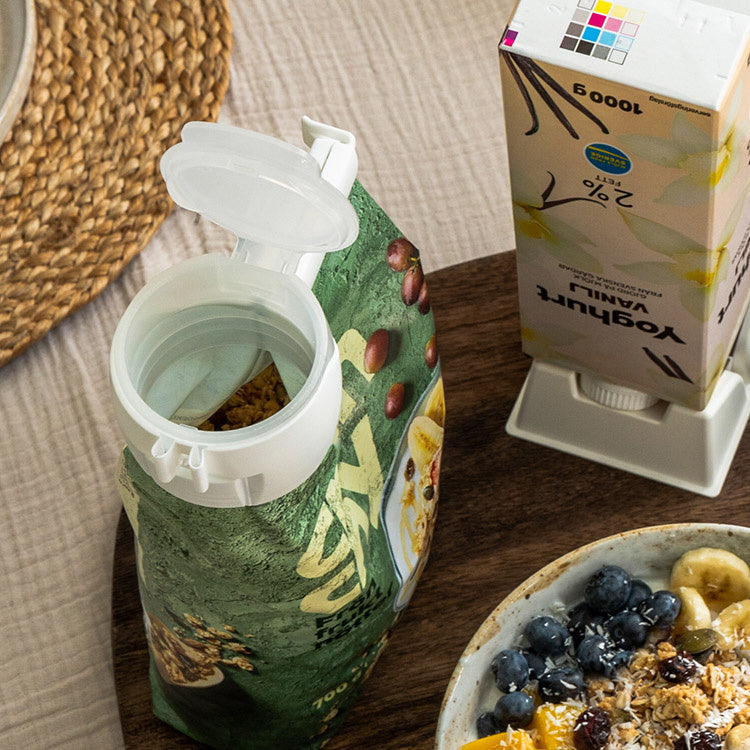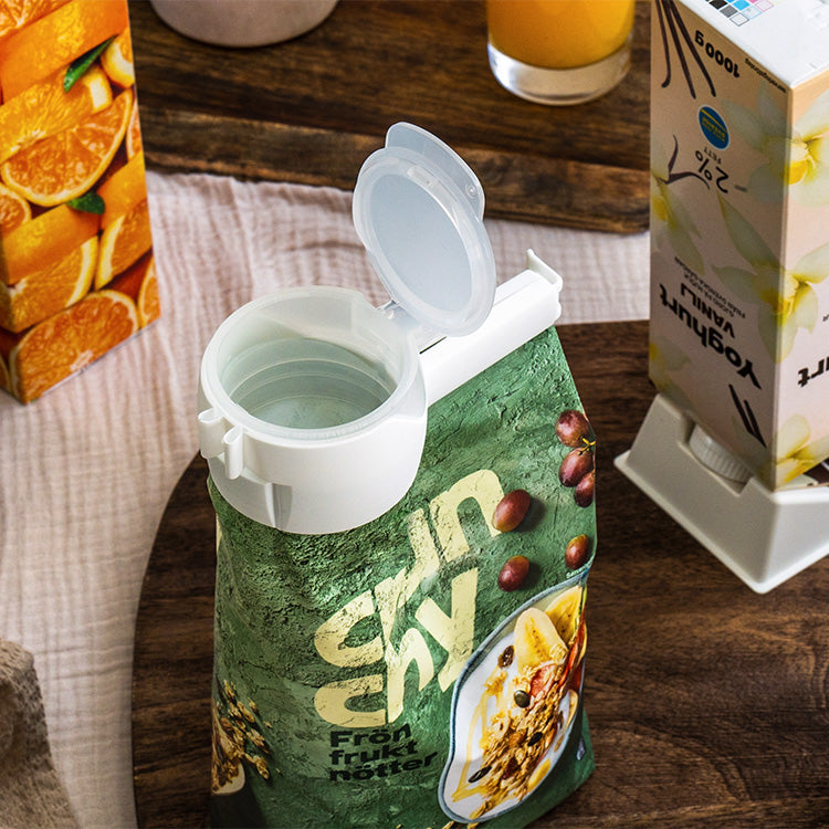 Seal & Pour Cap™ transforms ordinary bags into resealable, pour-ready storage that saves time, space, and effort in your kitchen.